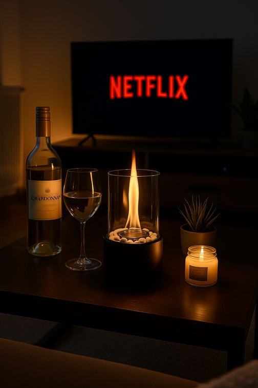 Notre cheminée de table est conçue pour être compacte et élégante, s'intégrant facilement sur n'importe quel meuble ou table basse.