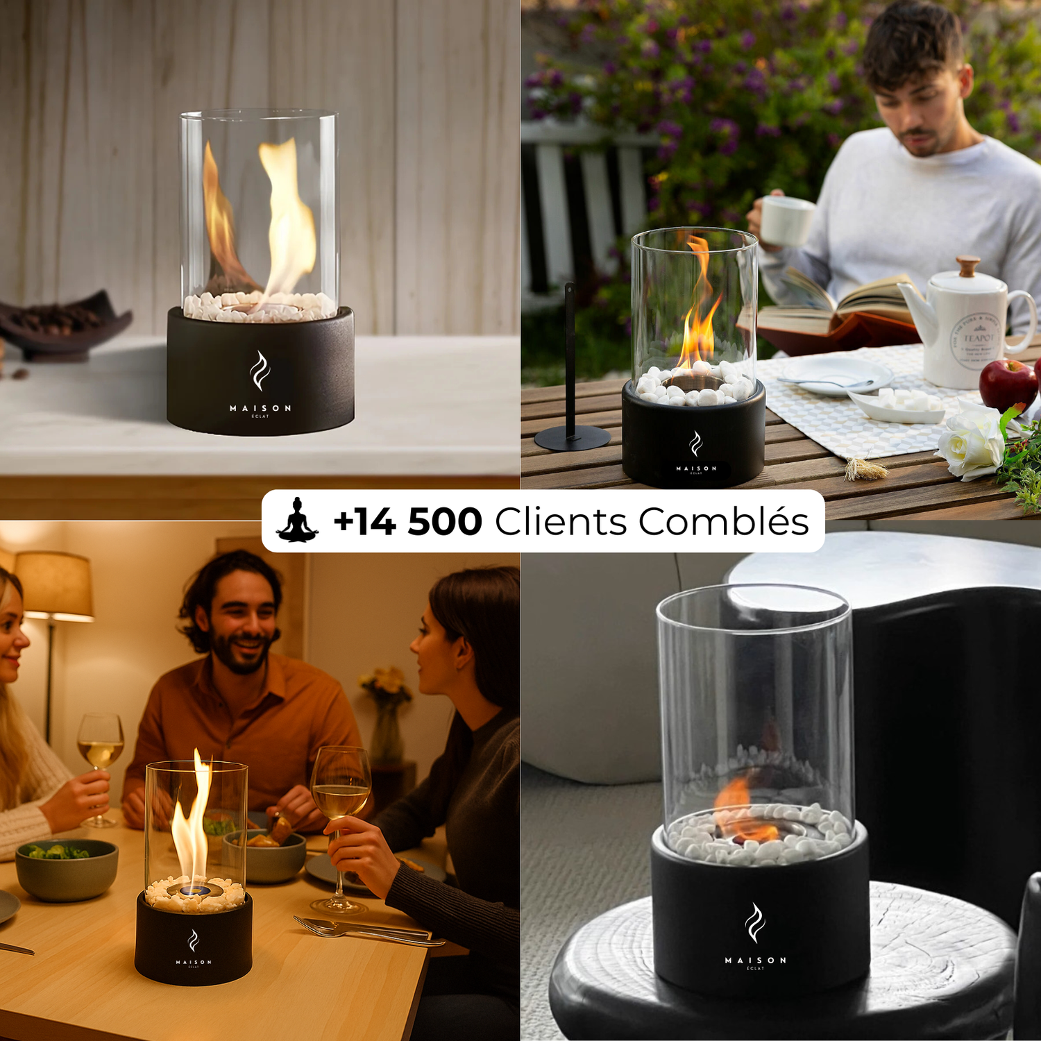 Depuis des millénaires, la flamme est le signal de sécurité. La cheminée de table Maison Éclat reproduit ce refuge ancestral grâce à son Mouvement de Flamme Hypnotique Calibré. Ce mouvement reproduit l'effet d'une ancre visuelle qui active instantanément votre système parasympathique, transformant l'anxiété en calme.